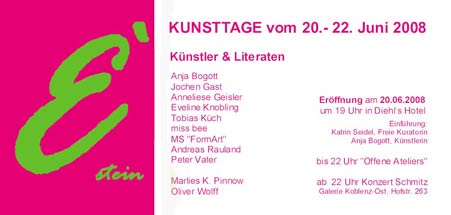 Marlies K. Pinnow & Bettina Anders – Lesung Phillippe Jaccottet / Georg Philipp Telemann Sonntag, 22.06., um 17 Uhr, Humboldtstr. 116 |